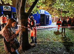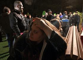 Последствия взрыва в многоэтажном жилом доме по улице Генерала Тюленева. Жители дома на улице.