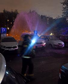 Последствия взрыва в многоэтажном жилом доме по улице Генерала Тюленева. Струи воды от пожарного…