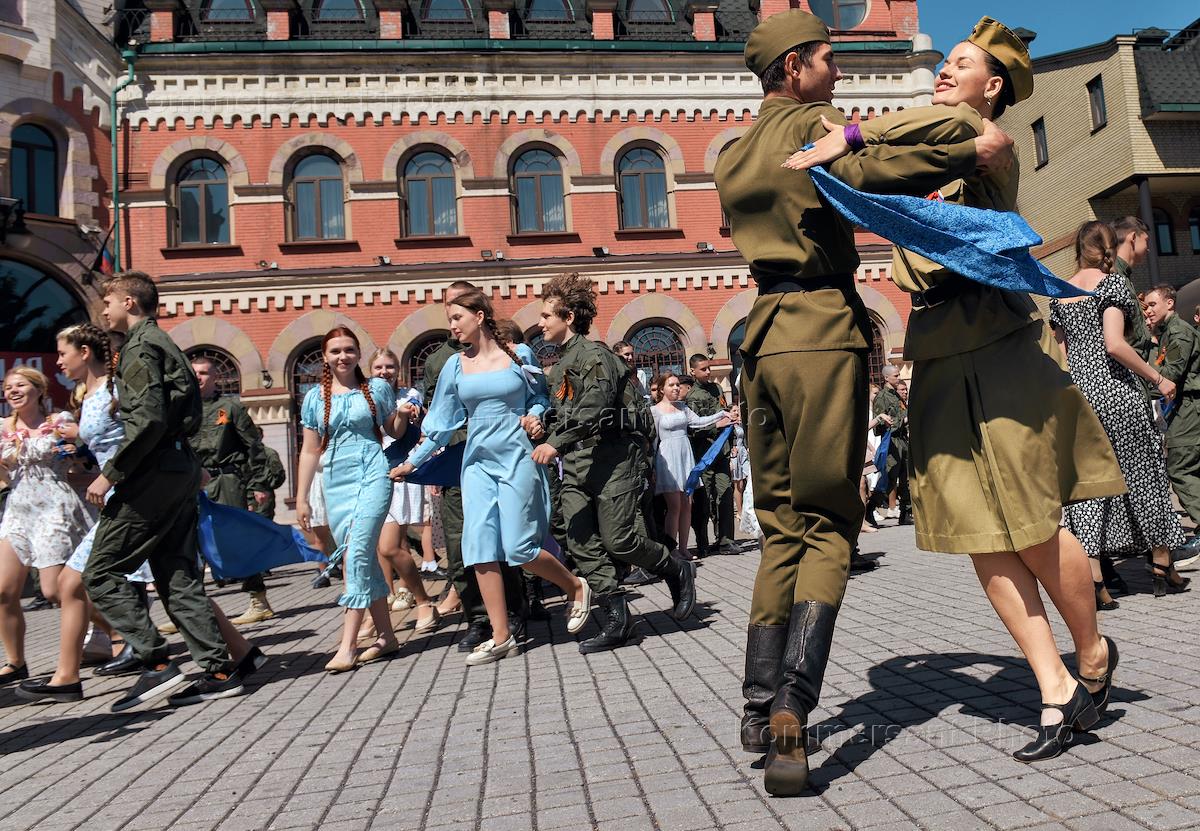 Акция "Вальс Победы" на железнодорожном вокзале в Дебальцево. Участники акции.