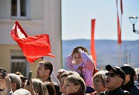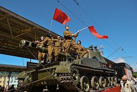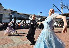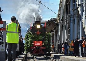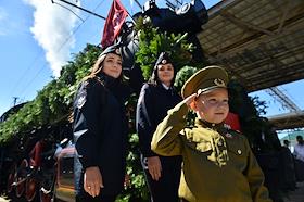 Акция "Эшелон Победы", посвященная 80-летию Победы в Великой Отечественной войне, на вокзале в Красноярске.