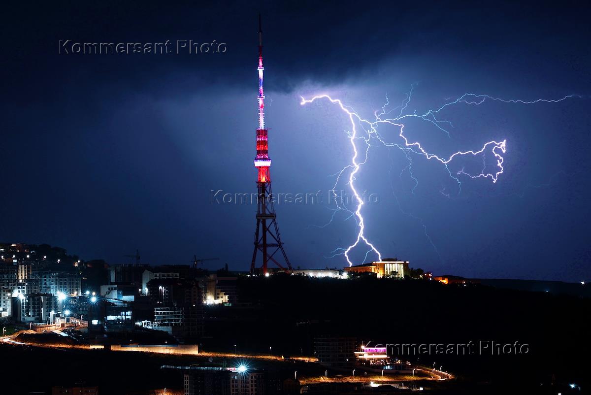 Виды Еревана. Жанровая фотография. Молния в небе над городом.