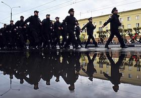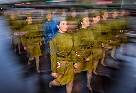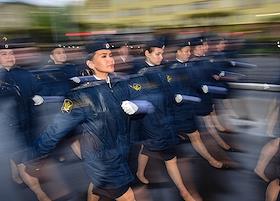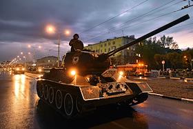 Армия и ВПК Репетиция военного парада, посвященного 80-й годовщине Победы в Великой Отечественной войне, на проспекте имени Газеты "Красноярский Рабочий" в Красноярске.