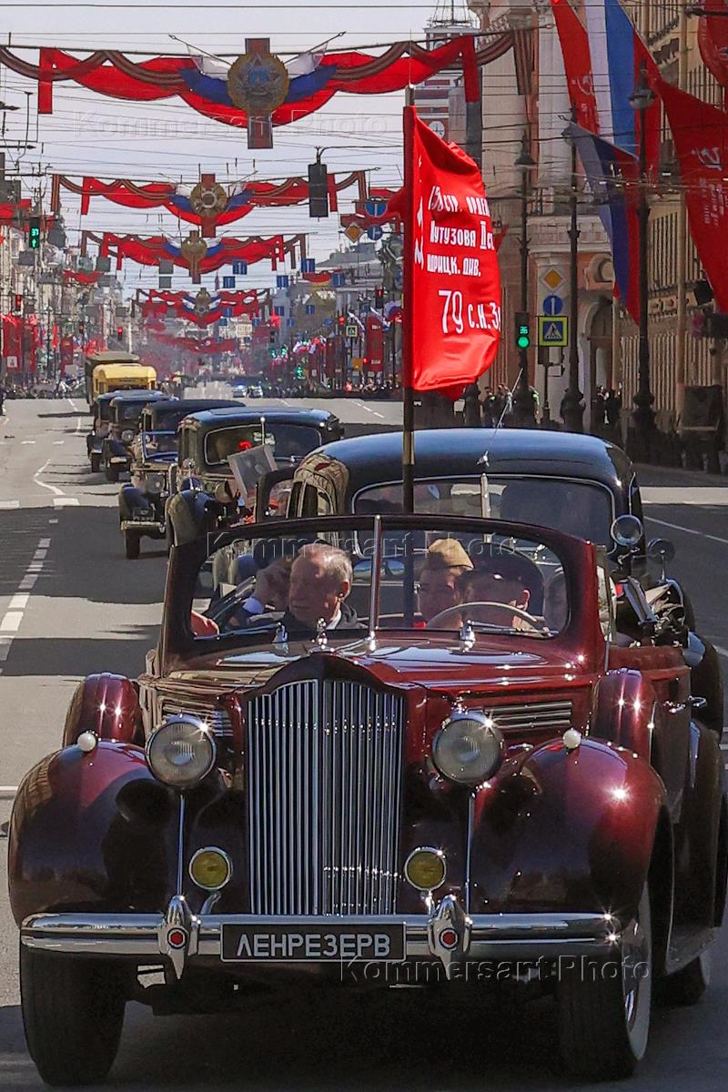 Празднование 80-летия Победы в Великой Отечественной войне. Жанровая фотография. Проезд на ретро…