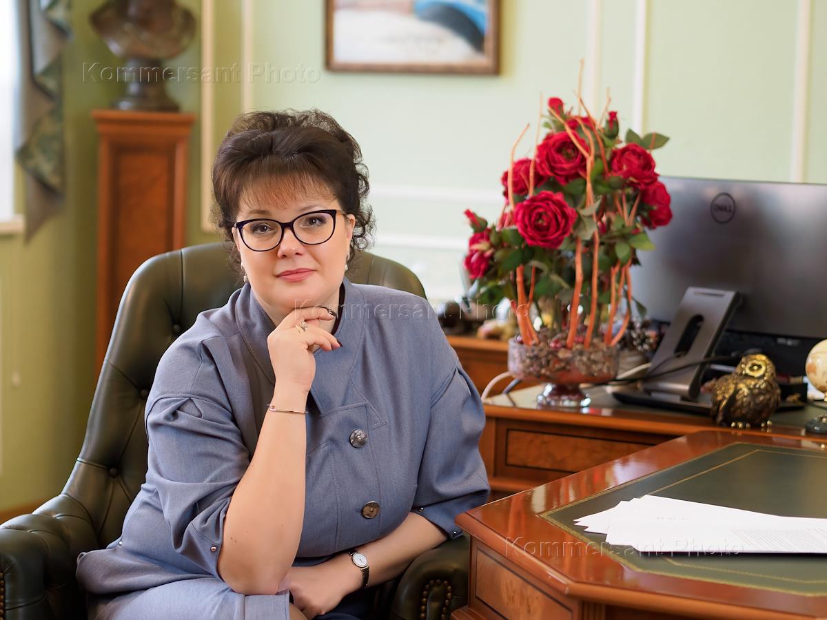 Ректор ГУАП (Санкт-Петербургский государственный университет аэрокосмического приборостроения) Юлия Антохина во время интервью.