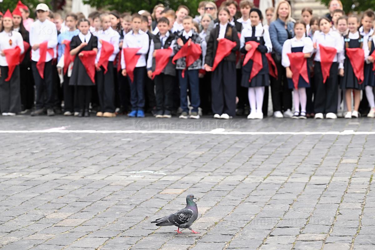Политика Торжественная линейка, посвященная 103-й годовщине создания Всесоюзной пионерской организации имени В.И. Ленина и прием школьников в ряды пионеров на Красной площади.