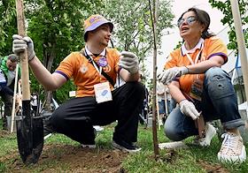 Открытый фестиваль искусств "Черешневый лес". Церемония посадки деревьев в Петровском парке около музея общества "Динамо".