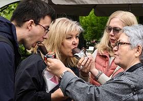 XXVIII Фестиваль мороженого 2025 на площади Островского. Посетители на фестивале.