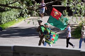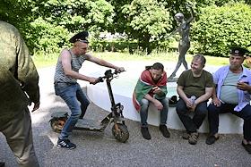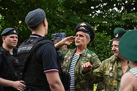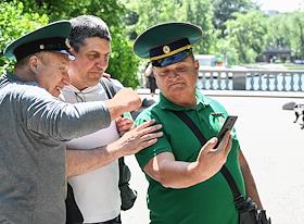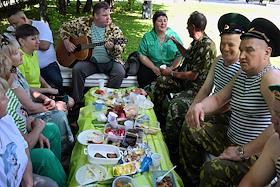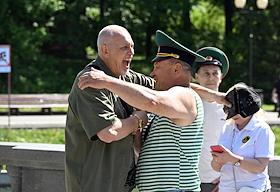 Празднование Дня пограничника. Жанровая фотография. Воины-пограничники во время гуляний в парке…