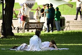 Жанровая фотография. Отдыхающие на траве в парке имени Горького.