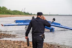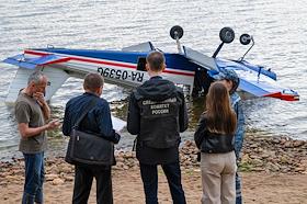 Аварийное приземление легкомоторного самолета на воду на пляже недалеко от аэродрома Бычье поле в…
