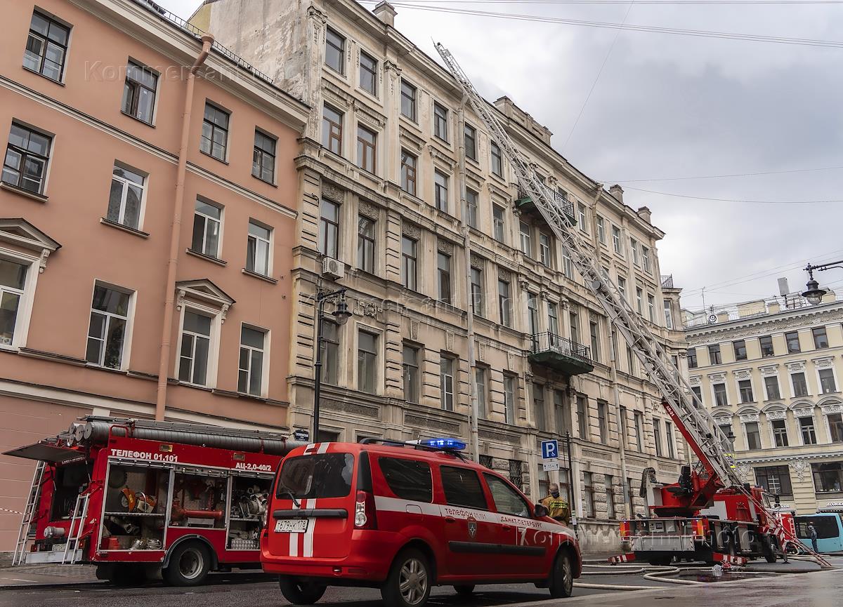 Работа сотрудников противопожарной охраны на углу улиц Пестеля и Гагаринской в Санкт-Петербурге.
