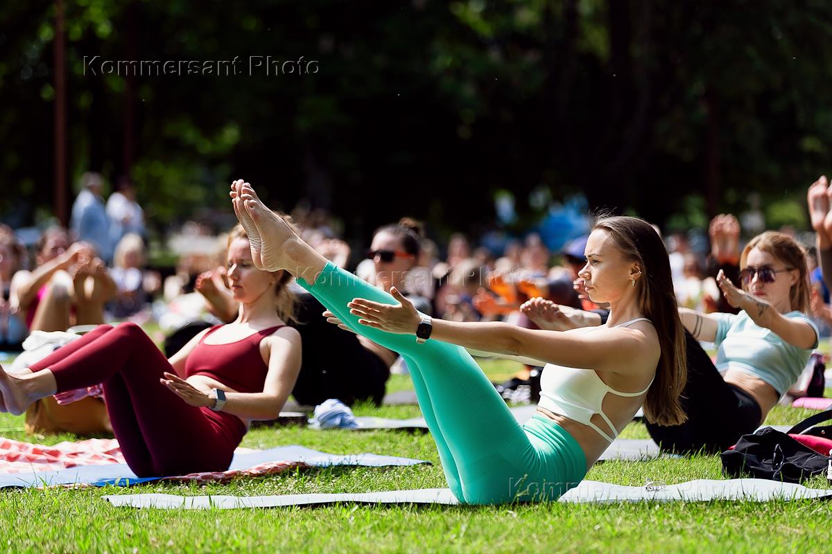 Бесплатные занятия по йоге на острове Канта. Жанровая фотография. Люди на занятии.
