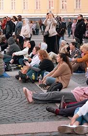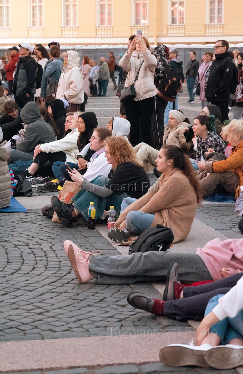Концерт "Классика на Дворцовой", посвященный празднованию Дня города, на Дворцовой площади. Зрители…