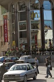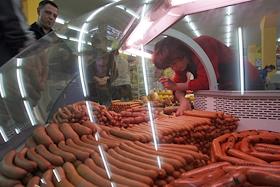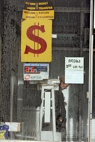 Грузинские акцизные марки на бутылках шампанского в супермаркете.