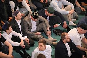 Праздник жертвоприношения Курбан-Байрам в Московской Соборной мечети. Верующие перед началом…