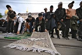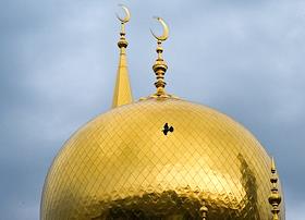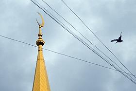 Праздник жертвоприношения Курбан-Байрам в Московской Соборной мечети. Жанровая фотография. Полумесяц…
