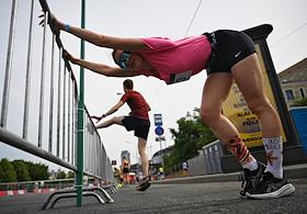"Красочный забег" на территории Олимпийского комплекса "Лужники". Участники во время разминки перед…