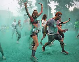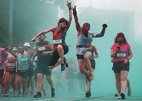 "Красочный забег" на территории Олимпийского комплекса "Лужники". Участники во время забега.