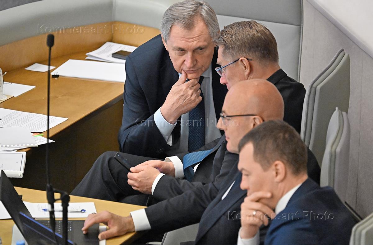 Пленарное заседание Государственной думы (ГД) России. Слева направо: председатель комитета ГД России…