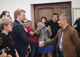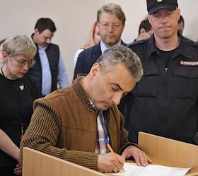 Правосудие Заседание по избранию меры пресечения заместителю председателя партии «Яблоко» Льву Шлосбергу (признан иноагентом) в Псковском городском суде