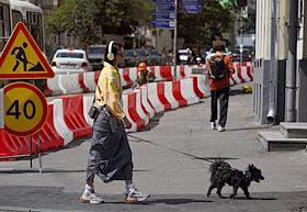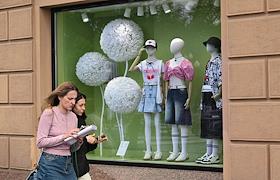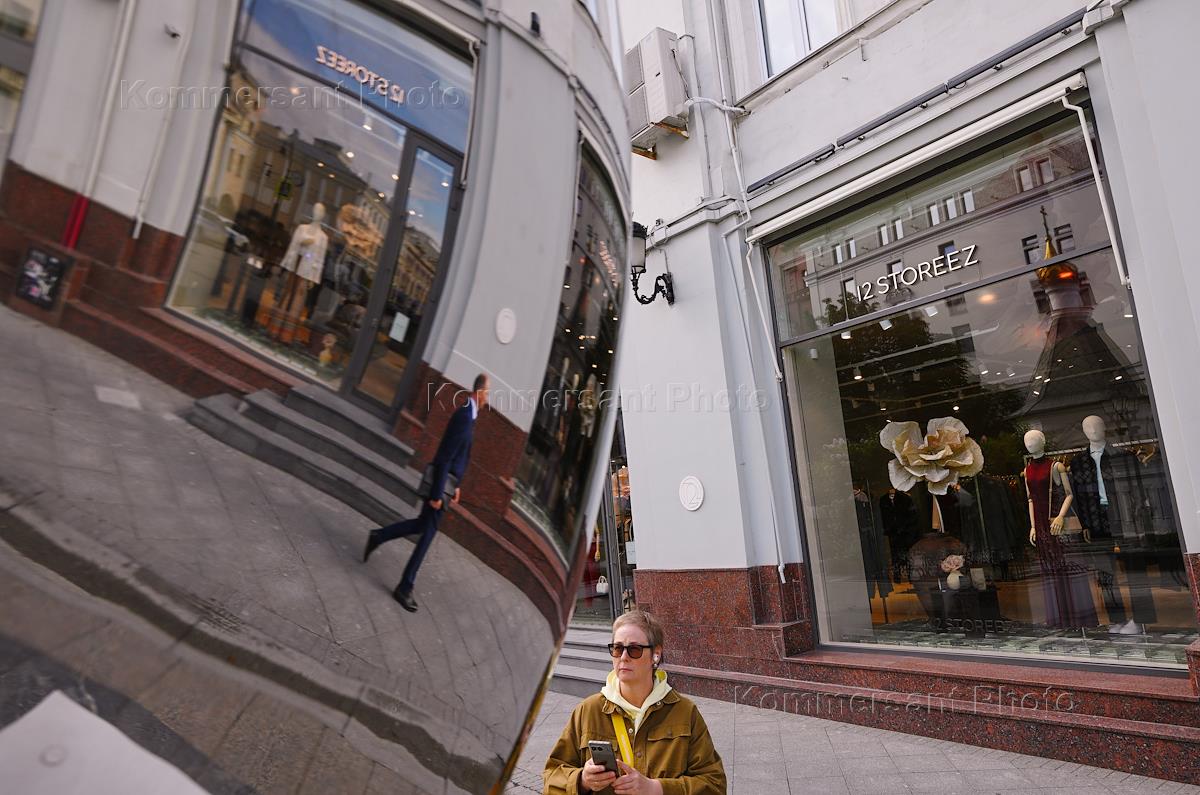 Жанровая фотография. Девушки проходят возле магазина женской одежды российского бренда "Святая" на…