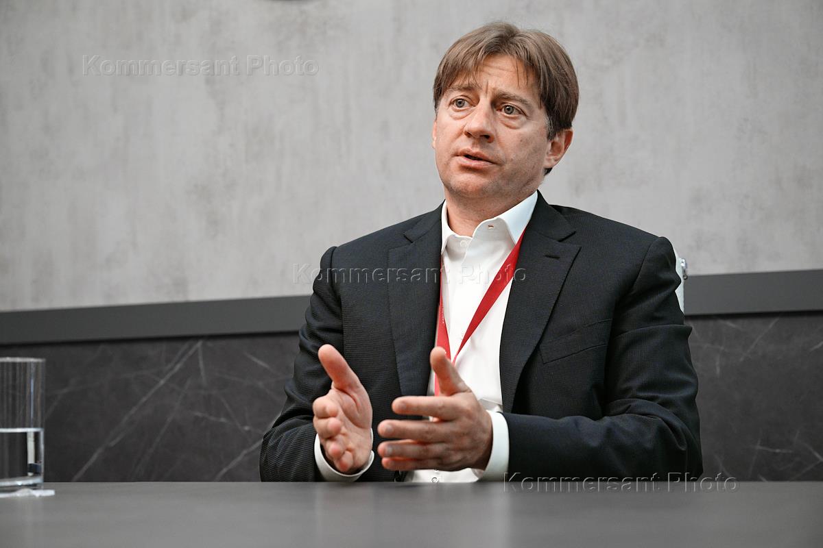 Экономика и бизнес XXVIII Петербургский международный экономический форум (ПМЭФ) 2025 в конгрессно-выставочном центре "Экспофорум". Генеральный директор АО "Трансмашхолдинг" Кирилл Липа во время интервью.
