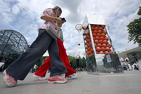 Празднование Дня молодежи на Болотной площади. Жанровая фотография. Стойка с баскетбольными мячами.