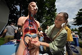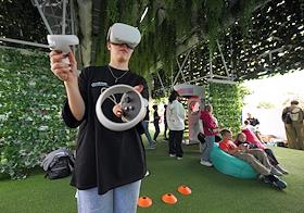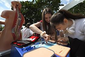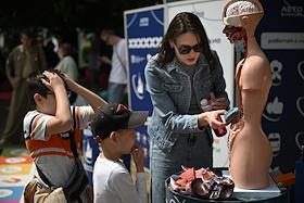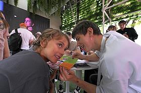 Празднование Дня молодежи на Болотной площади. Жанровая фотография. Посетители в хабе "Карьера" во…