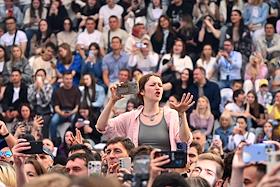 Празднование Дня молодежи на Болотной площади. Жанровая фотография. Зрители во время концерта.