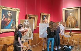 Жанровая фотография. Студенты художественных вузов во время копирования экспонатов в Государственном…