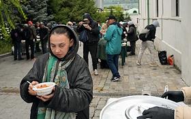 Еженедельный ужин для бездомных, проходящий каждый вторник в храме Флора и Лавра на Зацепе. Женщина…