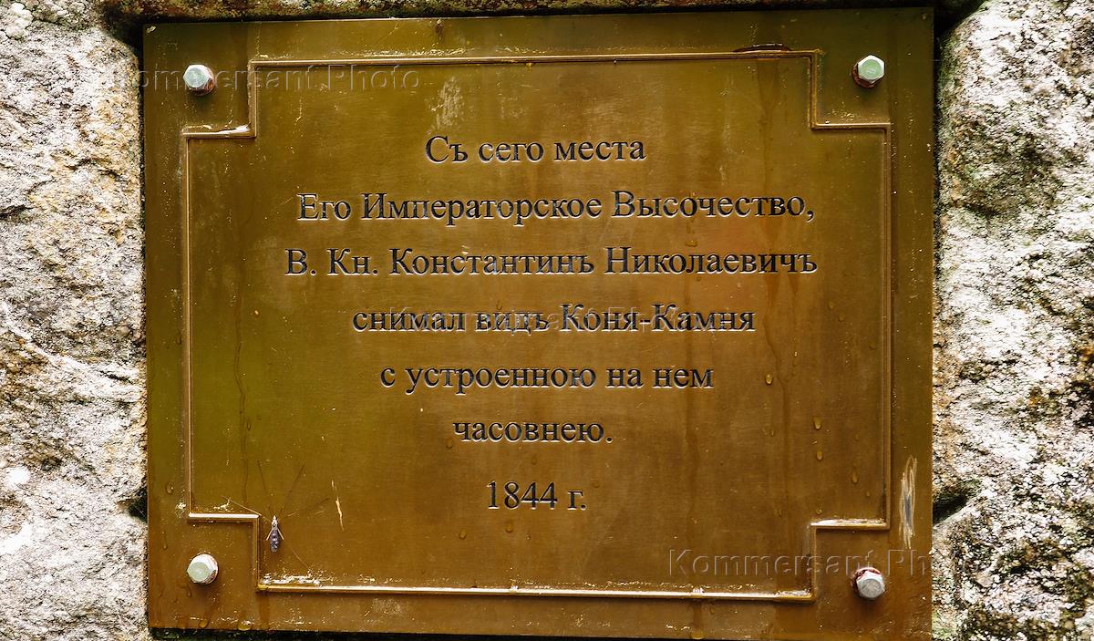 Виды острова Коневец. Коневский Рождество-Богородичный мужской монастырь. Памятная табличка "С сего…
