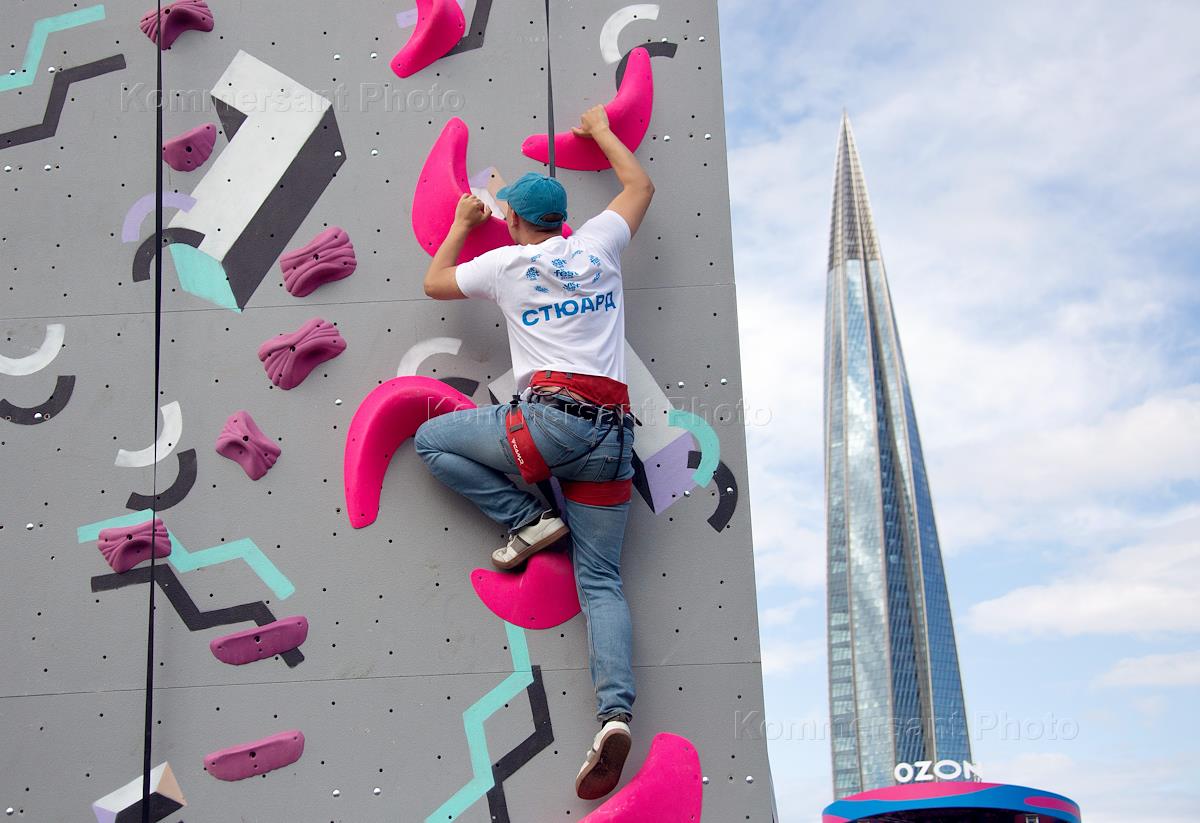 Vk Fest 2025 в парке 300-летия Санкт-Петербурга. Участники во время занятий по скалолазанию.