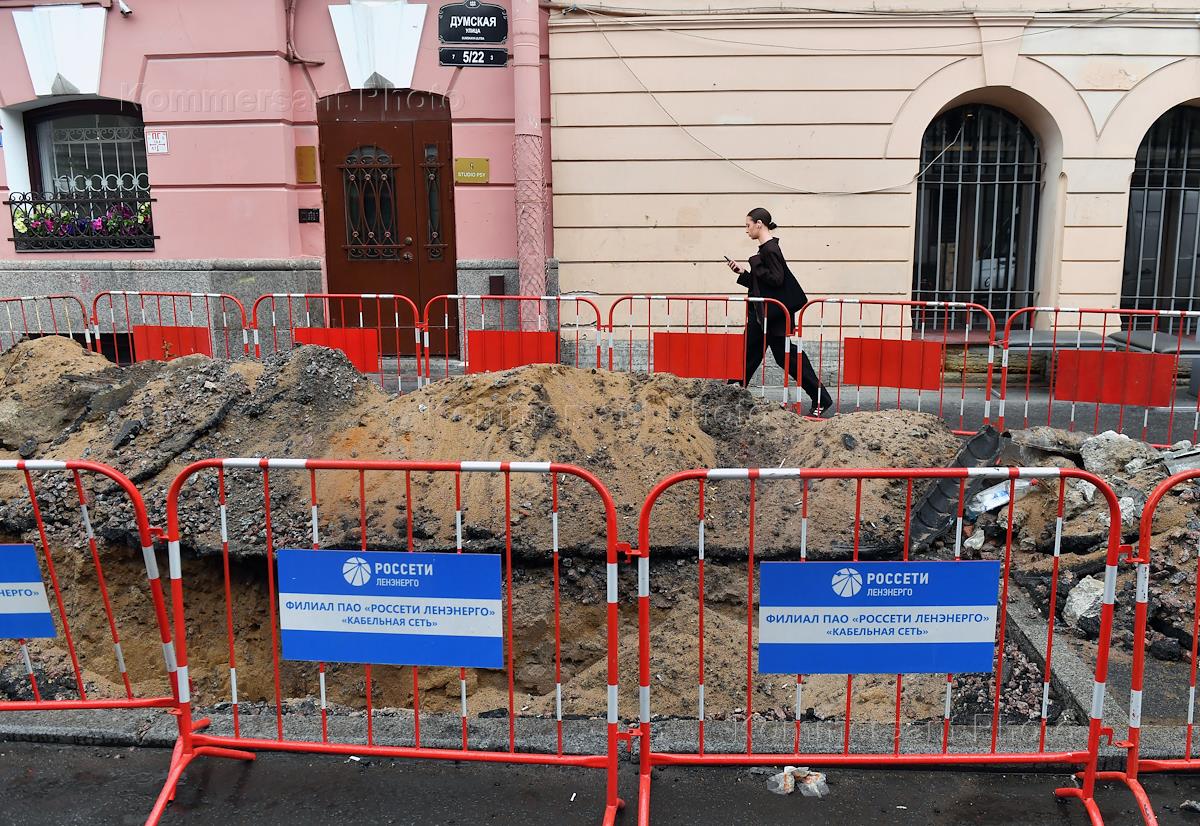 Жанровая фотография. Ремонтные работы компании "Россети" (Ленэнерго) на Думской улице.