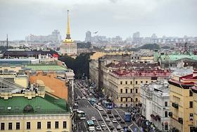 Виды Санкт-Петербурга. Невский проспект, Адмиралтейство и Дом книги (Дом Зингера) из Думской башни.