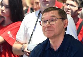 Церемония открытия лофт-пространства молодёжной организации "Молодая Гвардия Единой России". Справа…