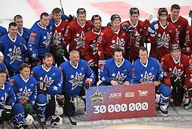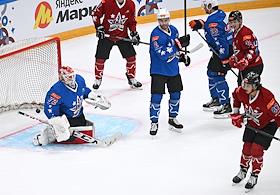 Благотворительный "Матч года 2025. Все звезды хоккея" между командами "Звезды КХЛ" и "Звезды НХЛ" на…