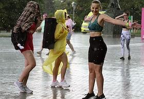 Женский фестиваль спорта в Парке искусств "Музеон". Жанровая фотография. Певец Митя Фомин (в центре)…