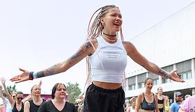 Женский фестиваль спорта в Парке искусств "Музеон". Жанровая фотография. Тренировка по фитбоксингу.