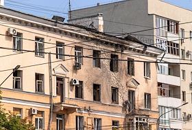 Последствия попадания беспилотного летательного аппарата (БПЛА) на жилой район города. Выбитые окна…