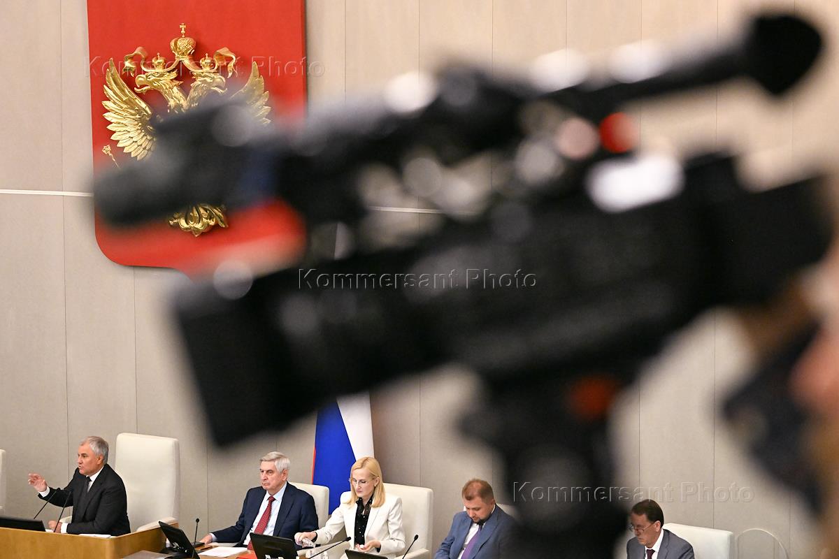 Пленарное заседание Государственной думы (ГД) России. Слева направо: председатель ГД России Вячеслав…