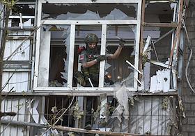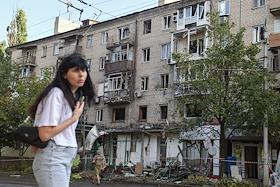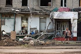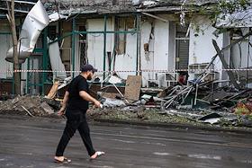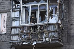 Ситуация в центре Донецка после обстрела. Пятиэтажный жилой дом, пострадавший в результате обстрела.