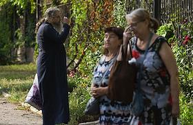 Ситуация в центре Донецка после обстрела. Участник "Народного фронта" во время обследования…