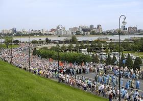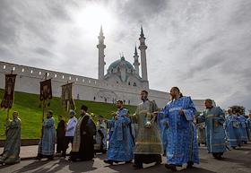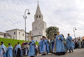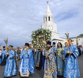 Крестный ход с Казанской иконой Божией Матери из Благовещенского собора Кремля до Казанского Богородицкого мужского монастыря.