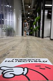 Жанровая фотография. Работа головного офиса интернет-сервиса Avito ("Авито"). Табличка на полу…