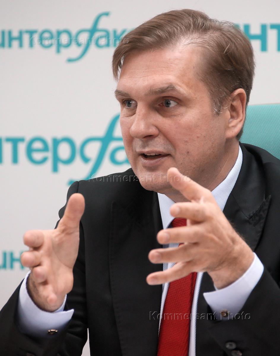 Экономика и бизнес Первый заместитель губернатора Ростовской области Алексей Господарев во время пресс-конференции "Перспективы развития торговой деятельности в Ростовской области" в пресс-центре информационного агентства "Интерфакс".