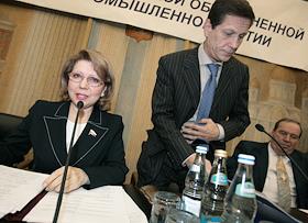 Председатель Российской объединенной промышленной партии Елена Панина (слева) и заместитель…