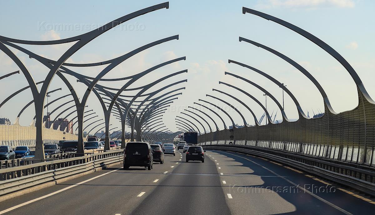 Западный скоростной диаметр (ЗСД). Дорожное движение на трассе. Жанровая фотография.