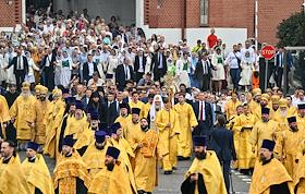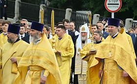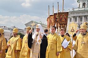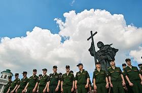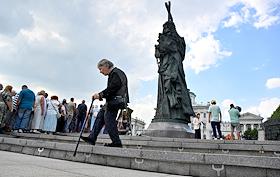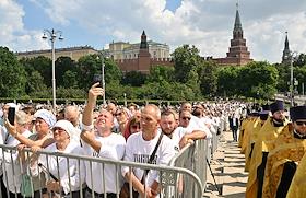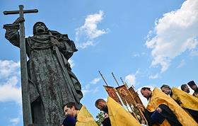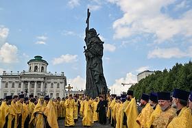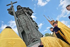 Религия Празднование Дня крещения Руси и Дня памяти святого равноапостольного великого князя Владимира. Крестный ход с мощами святого равноапостольного князя Владимира от Успенского собора Московского Кремля к памятнику князю Владимиру на Боровицком холме. Праздничный молебен у памятника князю Владимиру.