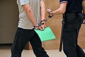 Жанровая фотография. Пресненский районный суд. Сотрудник полиции конвоирует в наручниках подсудимого.